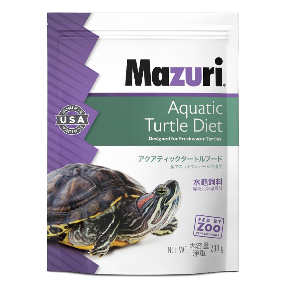 Mazuriアクアティックタートルダイエットは、ニシキガメやアカミミガメなどの淡水ガメの全ライフステージに対応するように作られた飼料です。水棲動物が餌を求めて水面に出てくるのを促すために水中に浮くように設計されています。